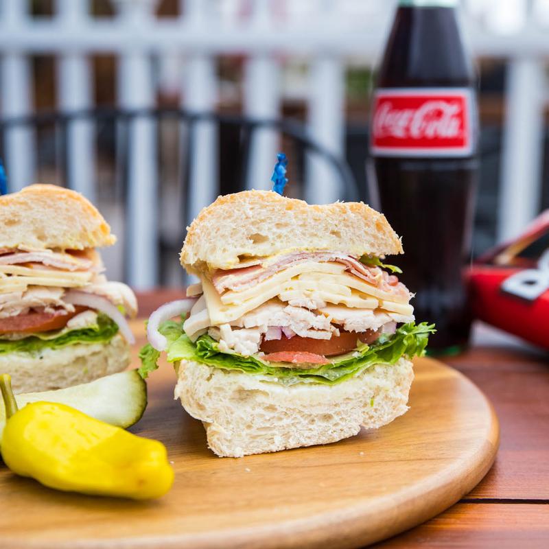 Pork tenderloin roasted in-house with cilantro, garlic, seasonings and melted jack cheese. We put our homemade honey mustard on this one. It's our specialty!