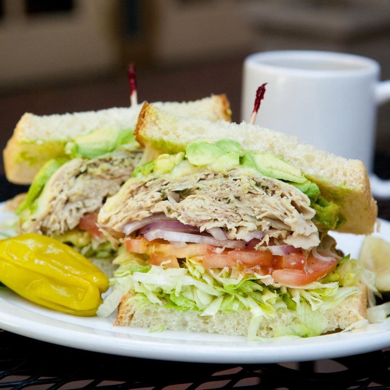 Turkey breast, Monterrey jack cheese and lots of fresh avocado — The Most Popular Sandwich Here!!