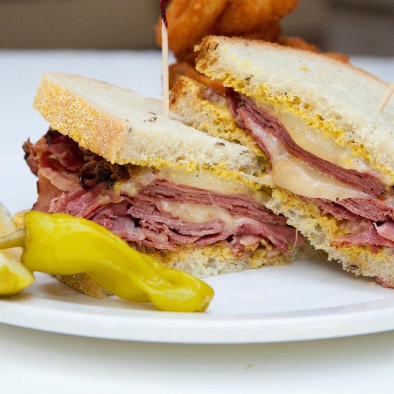 Corned beef, Swiss cheese and sauerkraut Your choice of mustard or 1000 island dressing